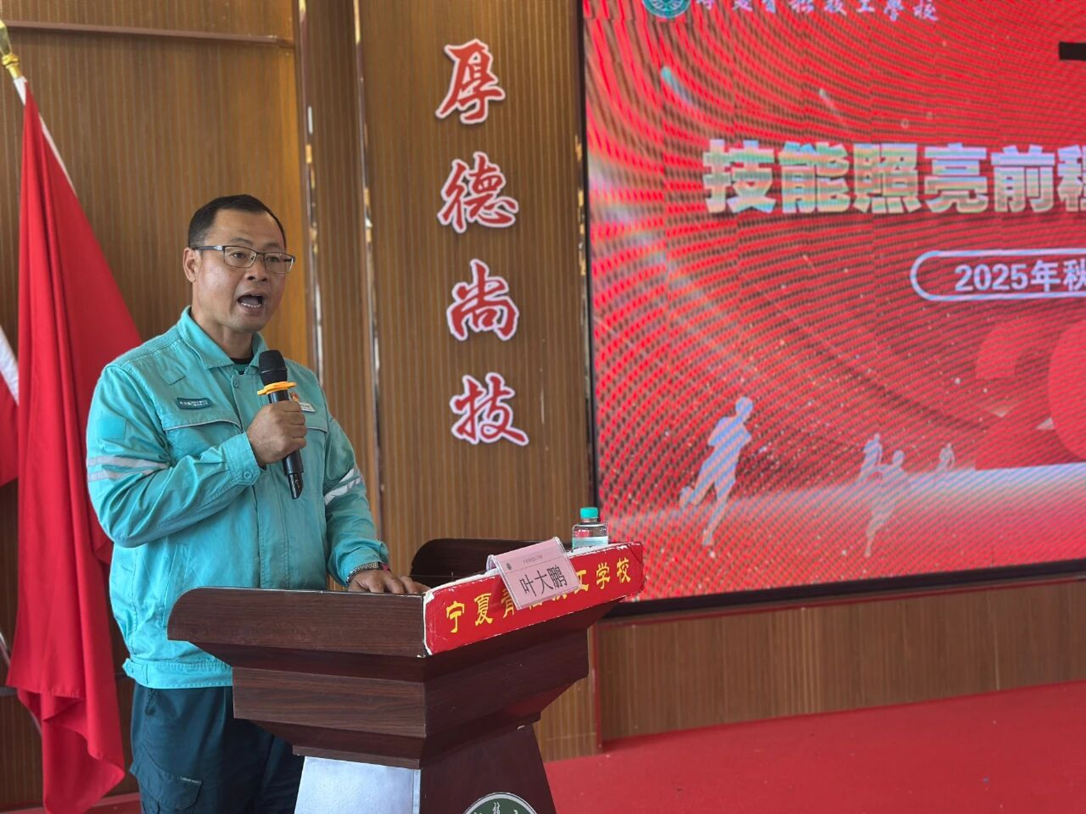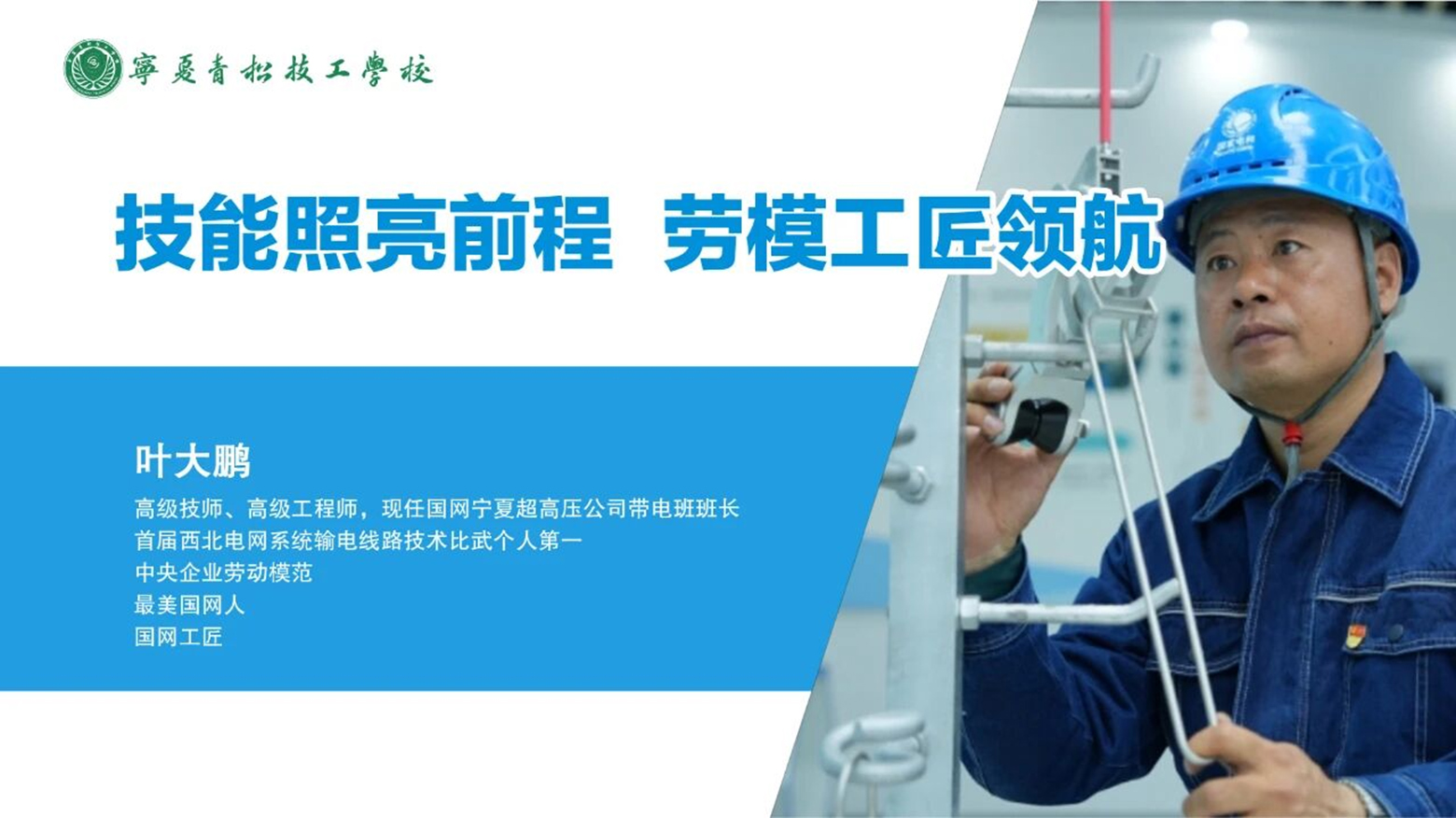 随后,全国劳动模范、国网宁夏超高压公司带电班班长叶大鹏走上讲台,为师生们带来了精彩的开学第一课。叶大鹏作为一名扎根电力行业多年的劳模,他结合自身的工作经历,生动地讲述了自己在平凡岗位上勇于担当、精益求精的故事。他回忆起自己在带电作业中的种种挑战与克服困难的过程,每一个细节都展现出他对工作的敬业精神和对技术的执着追求。叶大鹏强调,只要有坚定的信念和不懈的努力,就能在平凡的岗位上做出不平凡的业绩。他的讲述如同一盏明灯,为同学们照亮了前行的道路,激励着大家要树立远大理想,努力学习专业知识,培养坚韧不拔的意志和敬业奉献的精神。