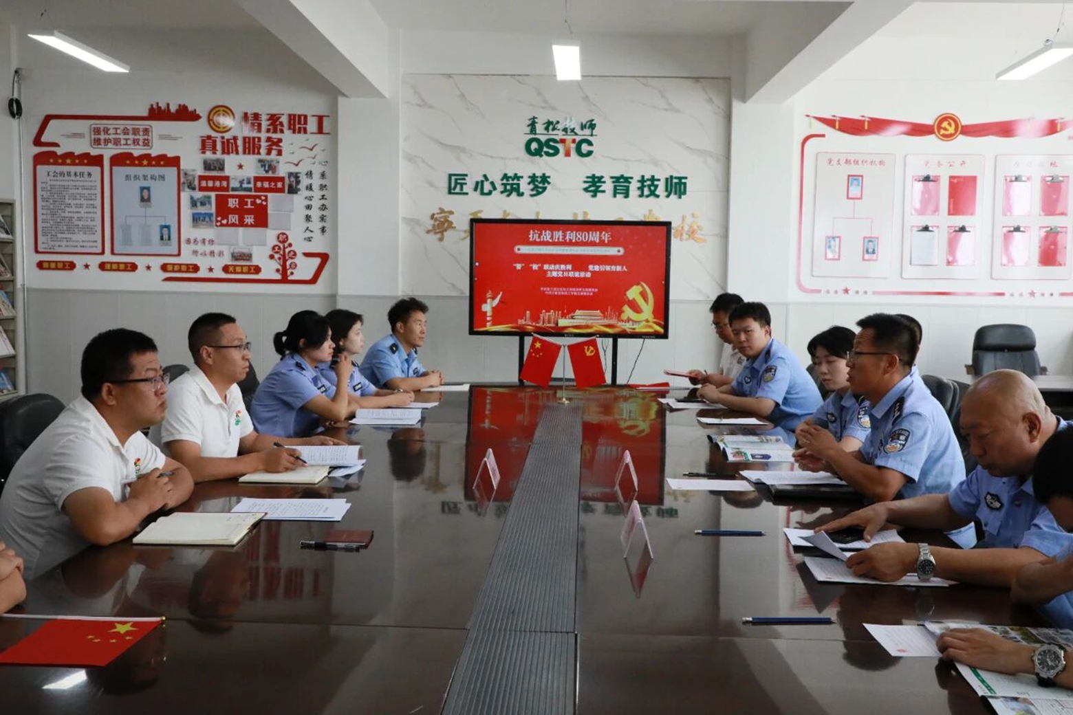 此次活动中,立岗派出所干警全程参与,与师生交流互动,共筑校园安全防线。这是学校深化“警校共建”机制的生动实践。观看阅兵结束后,双方围绕党建经验、安全教育和社会治理等主题进行交流研讨,有效整合了党建、人力、智力、教育等不同方面的资源优势,致力推动平安校园建设。