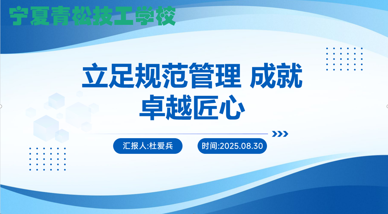 为助力学生快速适应校园生活,明晰校园规范,筑牢成长根基,宁夏青松技工学校于2025年8月30日开展立足规范管理,成就卓越匠心校纪校规专题讲座。本次讲座由学生处主任杜爱兵担任...