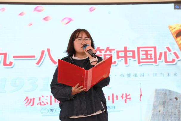 紧接着,教师代表谢丹上台发言。她结合职业教育的特点,发表了激情洋溢的讲话。谢老师指出:“国耻永不能忘,振兴刻不容缓。历史的教训告诉我们,落后就要挨打,强国必先强技。同学们,你们是未来大国工匠的预备队,是推动产业升级、实现民族复兴的重要力量。希望你们能将爱国之情、报国之志融入到每一次实操、每一门课程中,精益求精,磨练匠艺,以卓越的技能筑牢国家发展的基石,真正实现‘技能成才,强国有我’的青春誓言!”