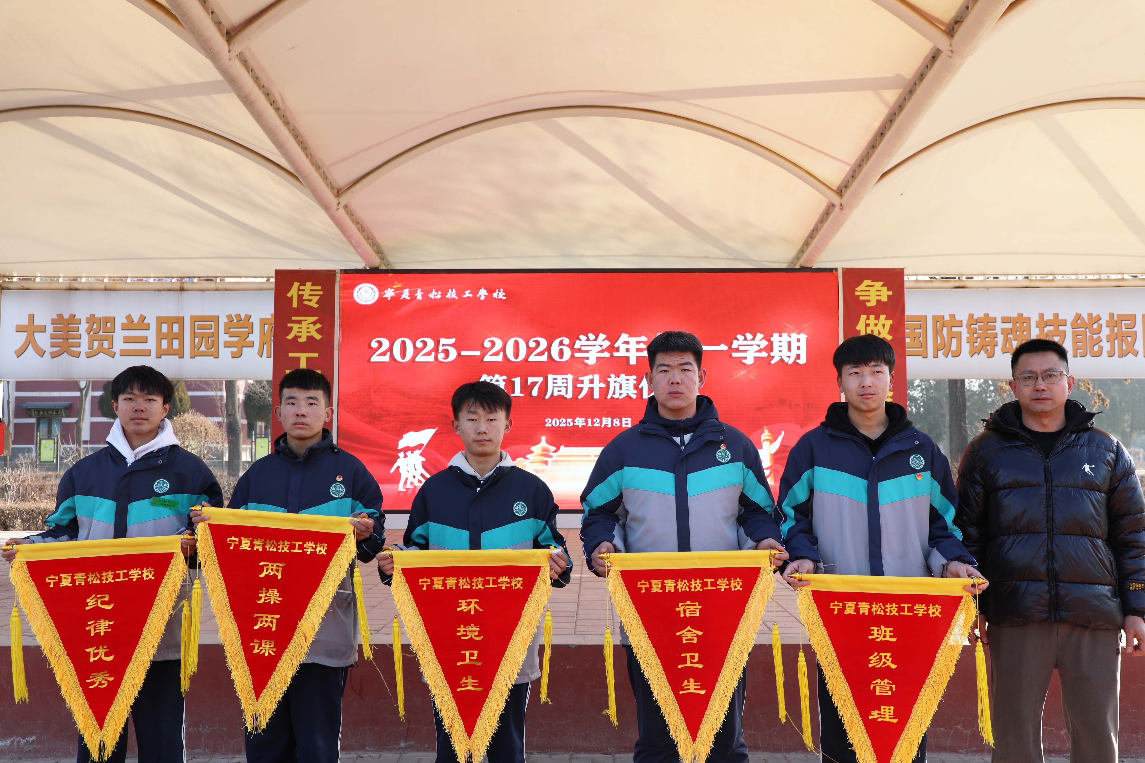 为传承红色基因、厚植爱国情怀,12 月 8 日上午,宁夏青松技工学校举行 2025-2026 学年第一学期第 17 周升国旗仪式。仪式以“铭记历史 缅怀先烈” 主题,全体师生齐聚国旗下,回望峥嵘岁月,践行爱国担当。